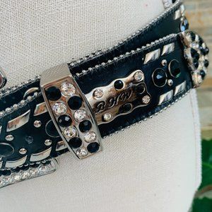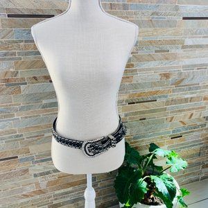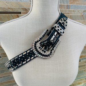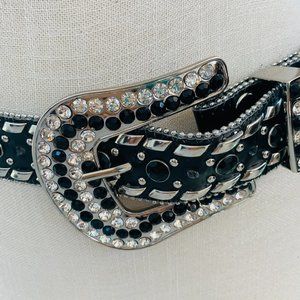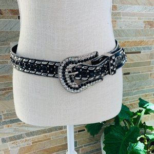 BHW WESTERN RHINESTONE & BLACK LEATHER BELT SZ M