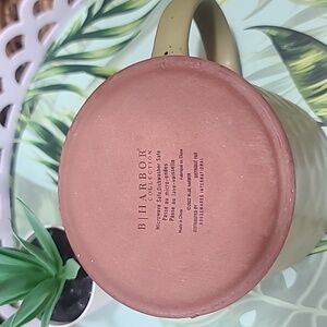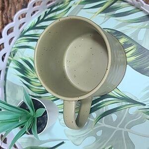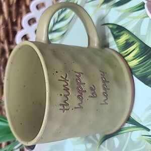 * Beautiful olive green * Think happy Be happy * Microwave safe * Pre-owned in like new condition