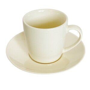 This BIA espresso demitasse cup and saucer China set lends a refined touch to any coffee experience. Hand glazed for durability, it's both dishwasher and microwave safe.