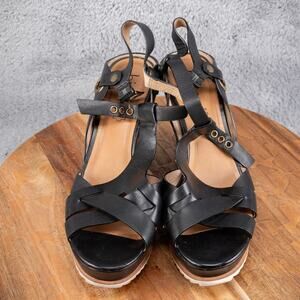 BIALA LEATHER BUCKLE WOMENS SHOES/SANDALS WEDGE HEEL BLACK SIZE 10 M