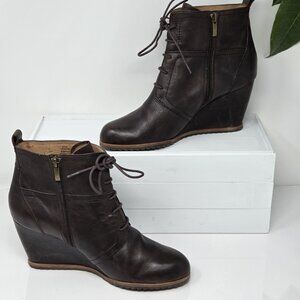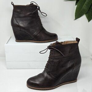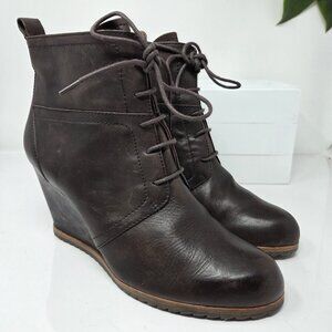 BIALA Leather Wedge Boots Womens 41 US 10 Brown Lace Tie Side Zipper Casual