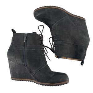 BIALA' Sz 39 Alyssa Lace-Up Leather Wedge Bootie Suede Leather Side Zip Lace Up