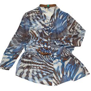 BIANCA of Germany Blue Tropical Print Silk Blend Waist Drawstring Tunic