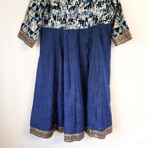 BIBA Kurta Tunic Maxi Dress Women Sz 38 Blue Gold Floral Print V Neck Lined