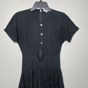 BIBHU MOHAPATRA Collective Dress Womens 6 Black Cutout Fringe Asymmetric Midi