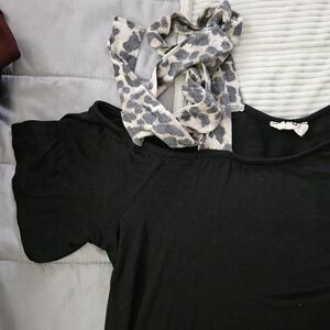 BIBI Black Women's Top w/ Animal Print Bow Tie On One Shoulder Size L