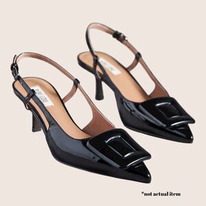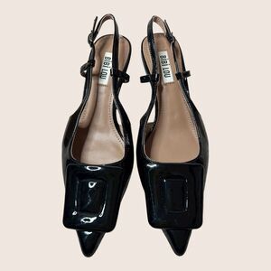 🖤 BIBI LOU ROBIN KITTEN HEELS BLACK PATENT LEATHER BUCKLE ANTHRO EU37 US7 NWT
