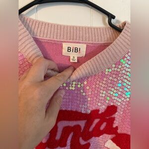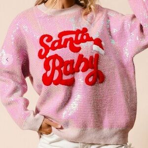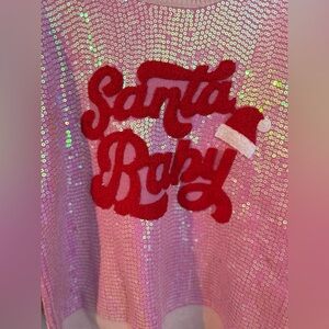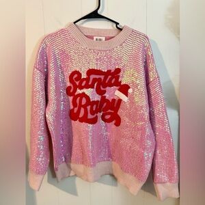BIBI Santa Baby Pink Sequin Christmas Holiday Sweater, Size S