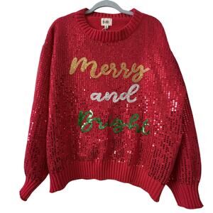 BIBI Sequin Christmas Sweater Merry and Bright Red Holiday XL