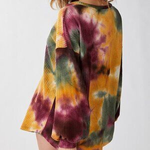 BIBI Tie Dye Waffle Knit Oversized Long Sleeve Shirt