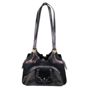 BICA CHEIA BLACK CRINKLED GENUINE LEATHER SUEDE TOTE SHOULDER BAG HANDBAG PURSE