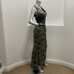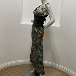 BICICI Halter Green Paisley Print Maxi Gown Cutouts Back Size XS Cocktail Party