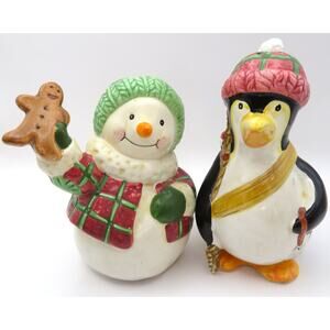 BICO Snowman & Penguin Salt & Pepper Shaker Set Ceramic Christmas Kitchen Decor