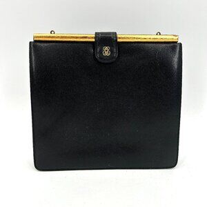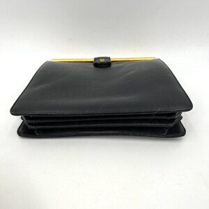 BIENEN DAVIS Vintage 1950's Black Leather Accordion Square Hand Bag Purse