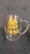 For anyone who likes sassy affirmations along with their morning cup of coffee, tea, this glass mug is for you, lol! Large, 18 oz, clear mug with gold lettering of the phrase “BIG ASS CUP OF GET SHIT DONE” (on both sides)! ☕️🍵💪 Great background to show off against swirls of cold brew, coffee, tea drinks with creamer or foam! 😋😍