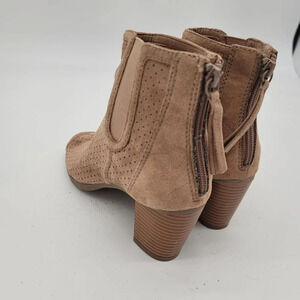 BIG BUDDA Open Toe Bootie Ankle Boots Womens Block Heel Tan Beige Zip Back 7.5