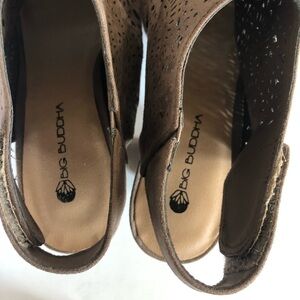 BIG BUDDHA Faux Suede Laser Cut-out Peep Toe Open Back Block Heel Sandal Size 8