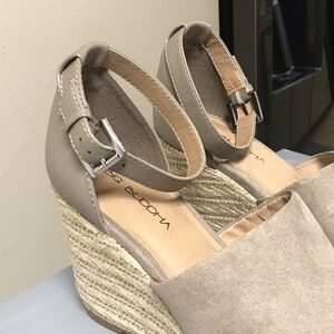 BIG BUDDHA / Gray/Tan Platform Espadrille Wedge Sandal Size 11