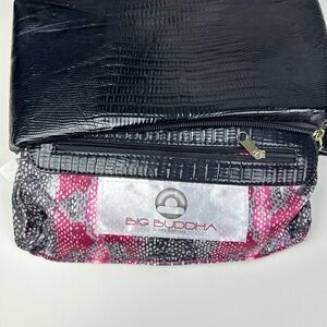 BIG BUDDHA Santa Barbara Black Patent Leather Clutch Wristlet Bag
