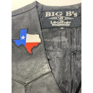 BIG B's Black Leather Vest Motorcycle Western 46 Harley Davidson Mason Patch