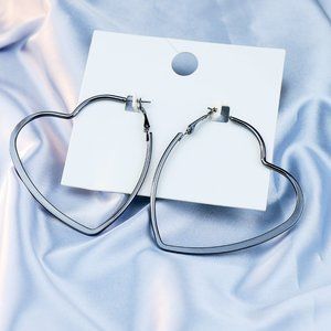 BIG HEART HOOP Earrings Gunmetal Silver tone NEW! 1165