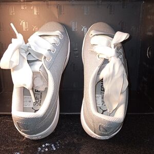 BIG KID Silver PUMA SNEAKERS With Ribbon Size 7Y