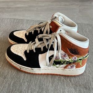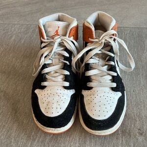BIG KIDS' AIR JORDAN RETRO 1 MID SE White/Black/Starfish/Vivid Green