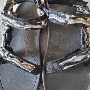 BIG KIDS UNISEX TEVA SANDALS SIZE 3 EUC BLACK GRAY WHITE