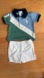From Poshmark AI — Stylish Ralph Lauren polo shirt and shorts set. Shirt features blue & green color block design. Includes white shorts for a complete look. Perfect for casual outings.