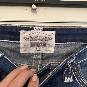 BIG STAR Liv Low Rise Boot Cut Contrast Thick Stitch Jeans, Dark Wash- Size 28