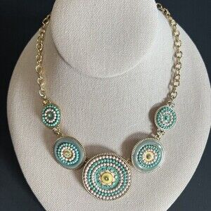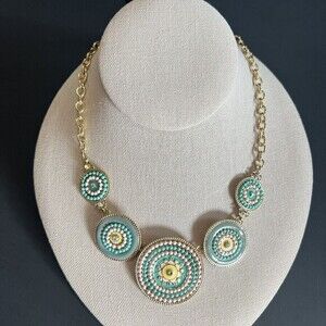 BIJOU BRIGITTE Gold Tone Chain Rhinestone Necklace 17" + 2.5" Ext. Enameled