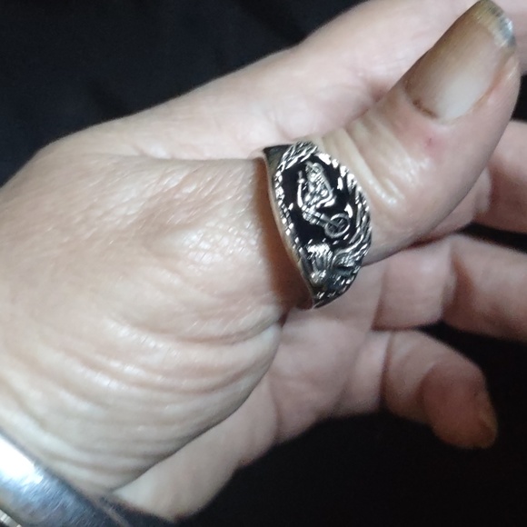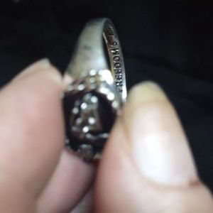 sz 12 or 13 biker rings :black enamel with low Rider and eagles wing inside band reads:FREEDOM RIDE