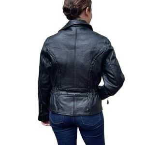 BIKERS DREAM APPAREL HEAVY LEATHER ZIP UP BRAIDED TRIM MOTORCYCLE MOTO JACKET