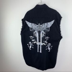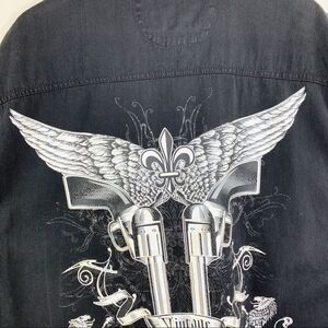 BIKER WEAR SLEEVELESS Black Button-Down SHIRT Revolver Gun Wings Image 5XL