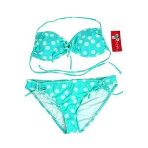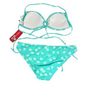 BIKINI LAB, Mint Green & White Polka Dot Bikini Set, Size XL