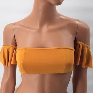 BIKINI Off Shoulder Bandeau Ruffle Top Lace Up Yellow