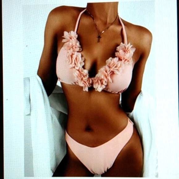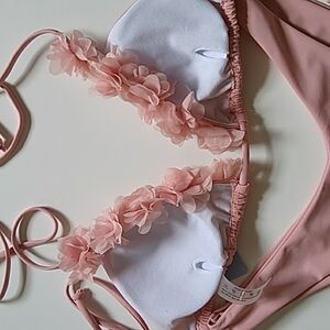 Layered cleavage lined in blush pink petals that's sheer, silky, and an organza appearance