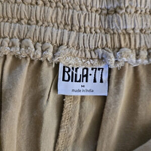 BILA 77 Ayala Pant Extra Wide Leg Palazzo Tan Elastic Waist 100% Rayon