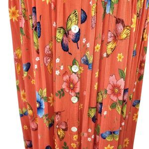 BILA Large Coral Floral Vintage Midi Dress Ribbed Button Down Skirt Pockets