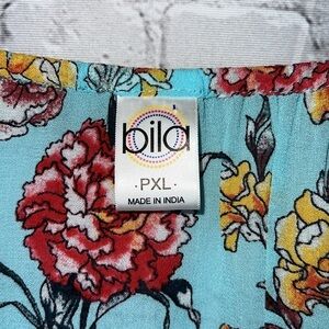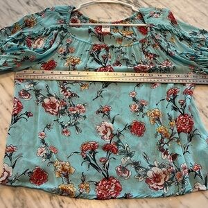 BILA Ruffled Embellished Floral Top in Turquoise Blue, Size S