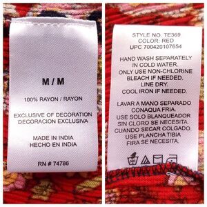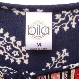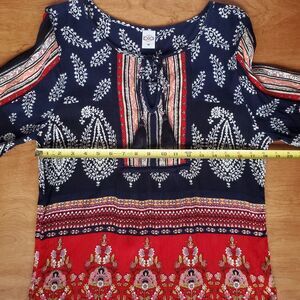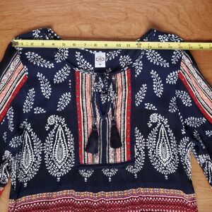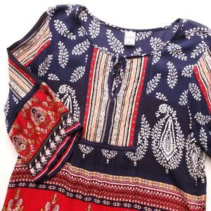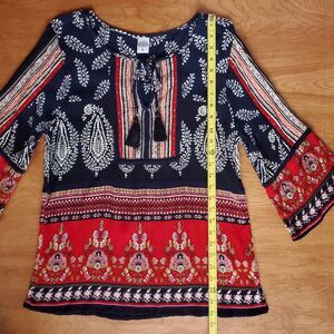 BILA Tunic Top Womens M Blue Red Floral Boho Peasant 3/4 Sleeve Tassel Paisley