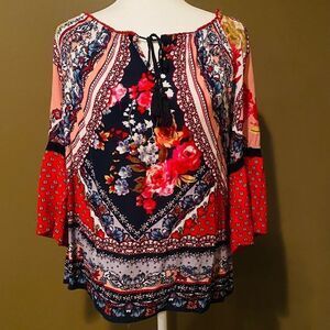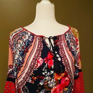 BILA Boho Top Bell Sleeve Size Small Hippie Toe Front