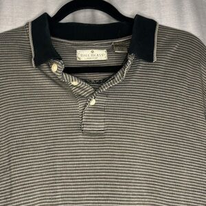 STYLE: Bill Blass retro polo, beige and black stripes, 100% cotton