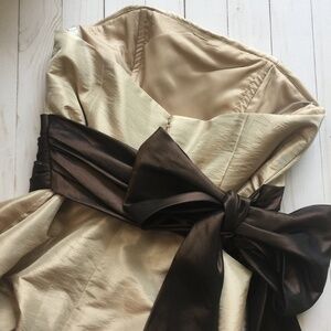 BILL LEVKOFF Champagne Brown Sash Bridesmaid Prom