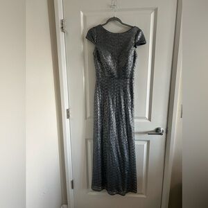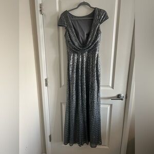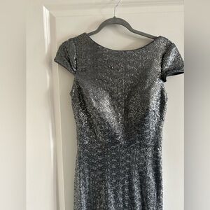 Short Sleeves Blue Sequin Bridesmaid Dresses With Draped Back, pre-owned, good condition,length from waist to bottom 43” perfect for any special occasion, wedding guests, cocktail dress,formal dress,prom,evening dress,mother of the bride dress.