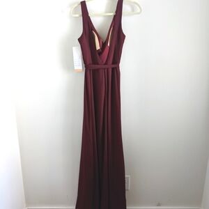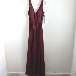 BILL Levkoff Wine Burgundy V Neck Chiffon Gown 10