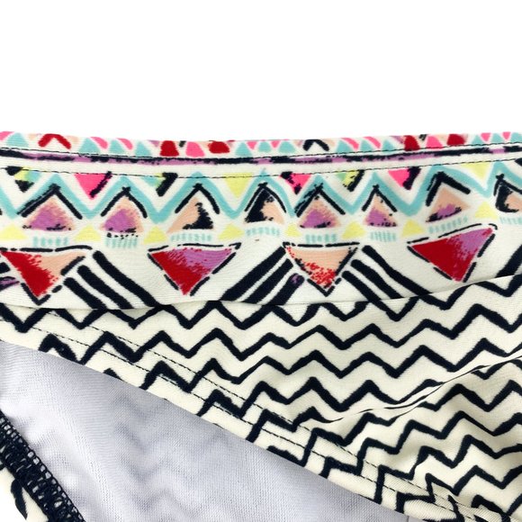 Description: Take a leap in a Bohemian vibe for an oceanic dive or snorkeling off the coast. The Billabong's swim bottom has a contrasted Aztec Southwestern style on the trim with a chevron, geometric pattern across the body. An endless way of staying in comfort and style while you are vacationing for the summer months. BILLABONG | AZTEC SOUTHWESTERN | SWIM WEAR