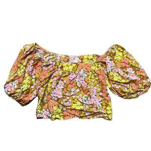 BILLABONG Beach Daze Puff Sleeve Cropped Top Size Small