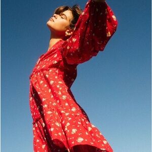 ☀️BILLABONG☀️ Billabong X wrangler The falling for you red floral dress.