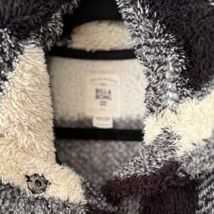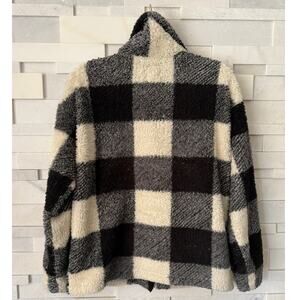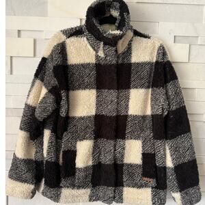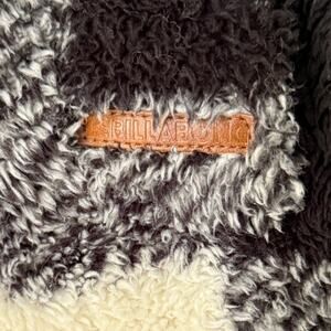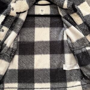 BILLABONG Buffalo Check Faux Fur Black Cream Pockets Funnel Neck Snap Jacket XS